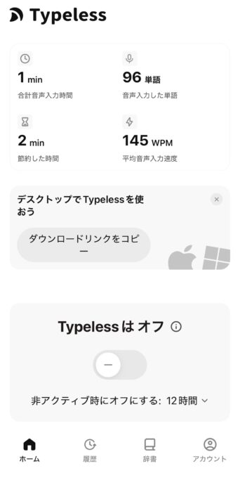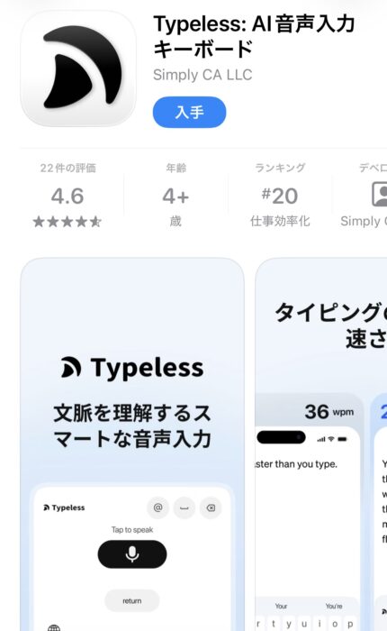 Typelessは音声入力とAI編集機能を組み合わせた入力ツールです。