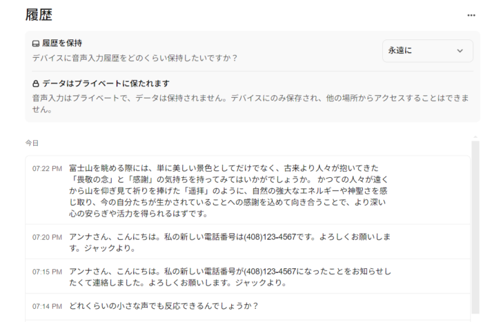 - 履歴と保存→音声データの保存・ダウンロード設定を確認(プライバシー対策)。