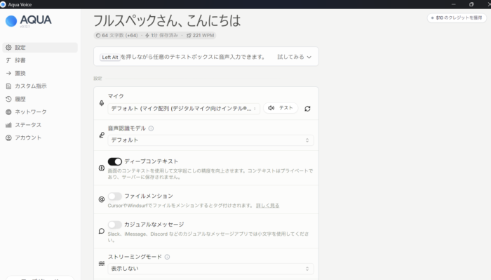 Aqua Voiceは音声認識とAIによる文脈理解を組み合わせた次世代の音声入力ツール。
