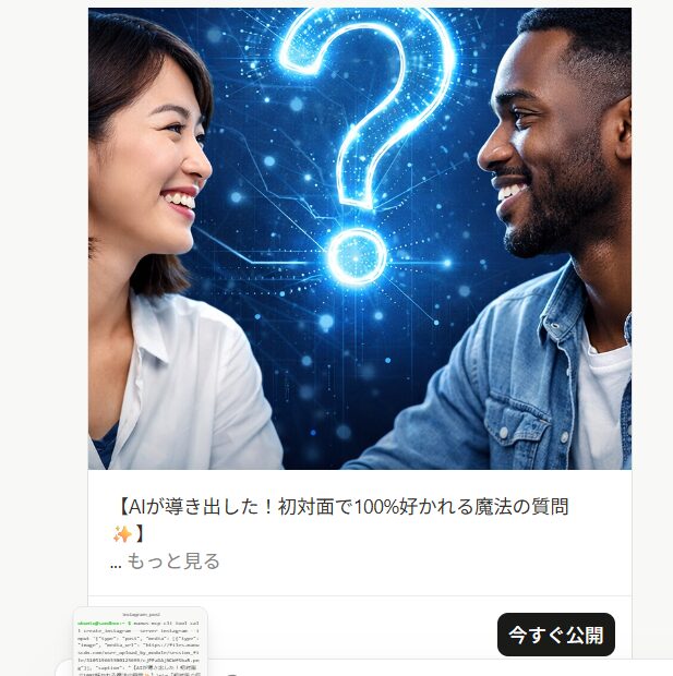 インスタ公式でAI エージェントが自動投稿できるようになったというのは、すごく注目すべき点です。